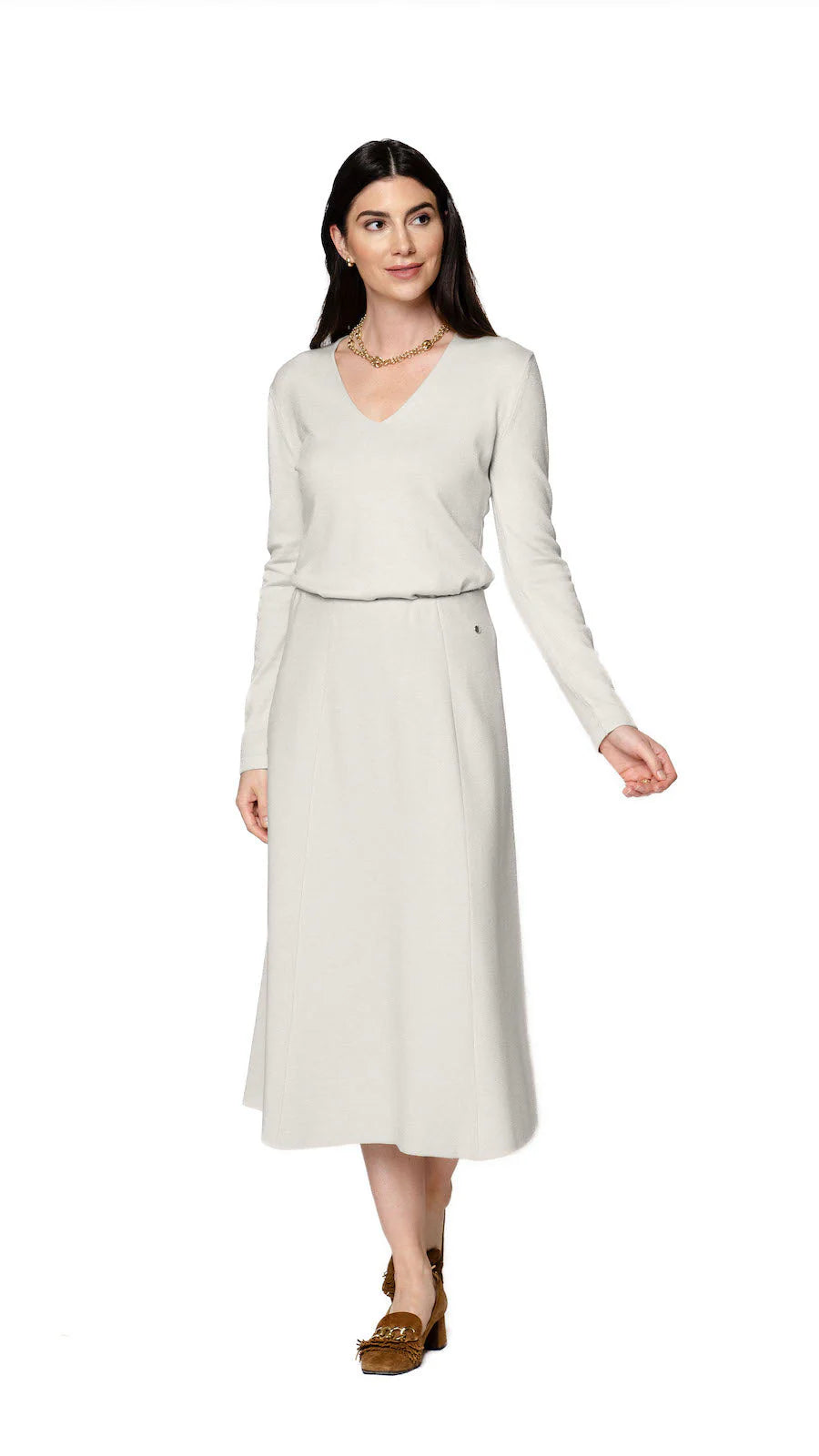 The easiest skirt to wear is a midi with enough fabric – or great side slits - for easy movement. Most shoes work well, and changing them makes transitioning effortless for the Bar Mitzvah or Graduate Mom going from ceremony to celebration. Choose shoes that ensure you wear the skirt, because some of them will try to wear you.