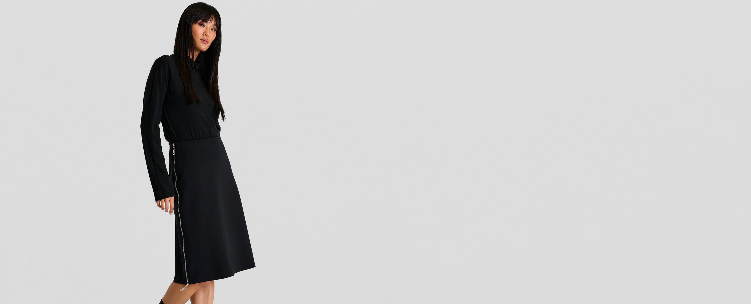 The pencil, above or below the knee, midi or full-length, flatters with its elegant taper from hip to hem. As a tailored piece, the pencil suggests a refined formality and femininity. Wearing one shows that you’re willing to put in the work, especially if vanity or weather requires hosiery. Whether the pencil pulls on or zips to the side or back, it’s vital to move easily to wear them well. Look for properly finished kick pleat(s) or side openings and make sure you walk gracefully in heels if you only pull them out now and then. Note the skirt length while seated, too, in case it shows more thigh than you prefer.