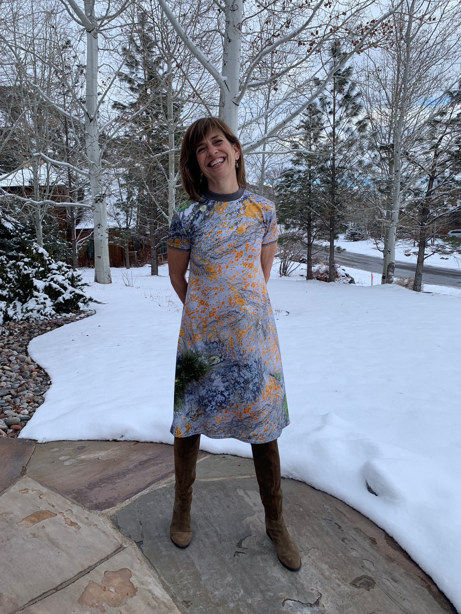 Both MSP print dresses share versatility, comfort, and a touch of drama. The simple shapes rendered in Marie’s own prints and jerseys result in deceptively casual dresses that go from a sightseeing stroll with sneakers, to a fine brunch with heels, and to the office with seasonally appropriate shoes and boots.