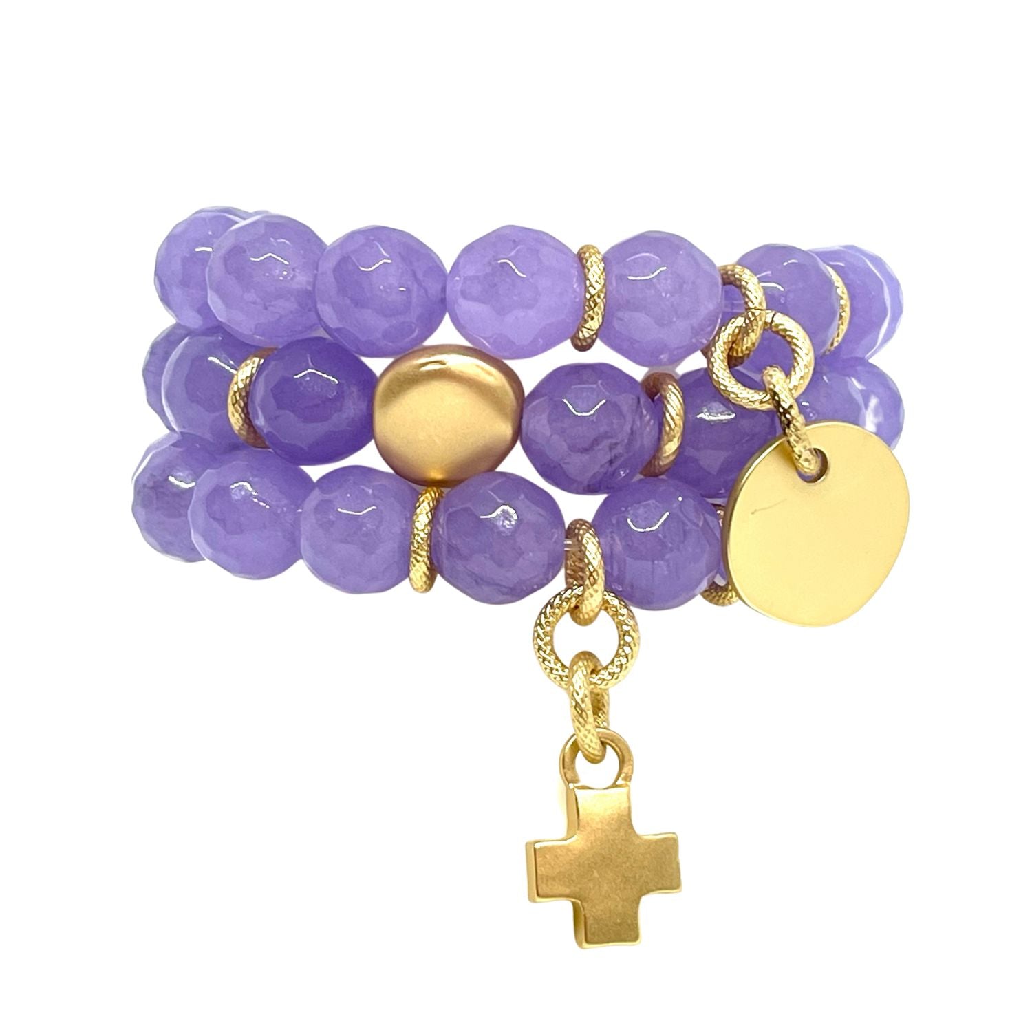 Lavender Jade Stretch Bracelet With Matte Gold NuggetMeasures One Size Fits Most