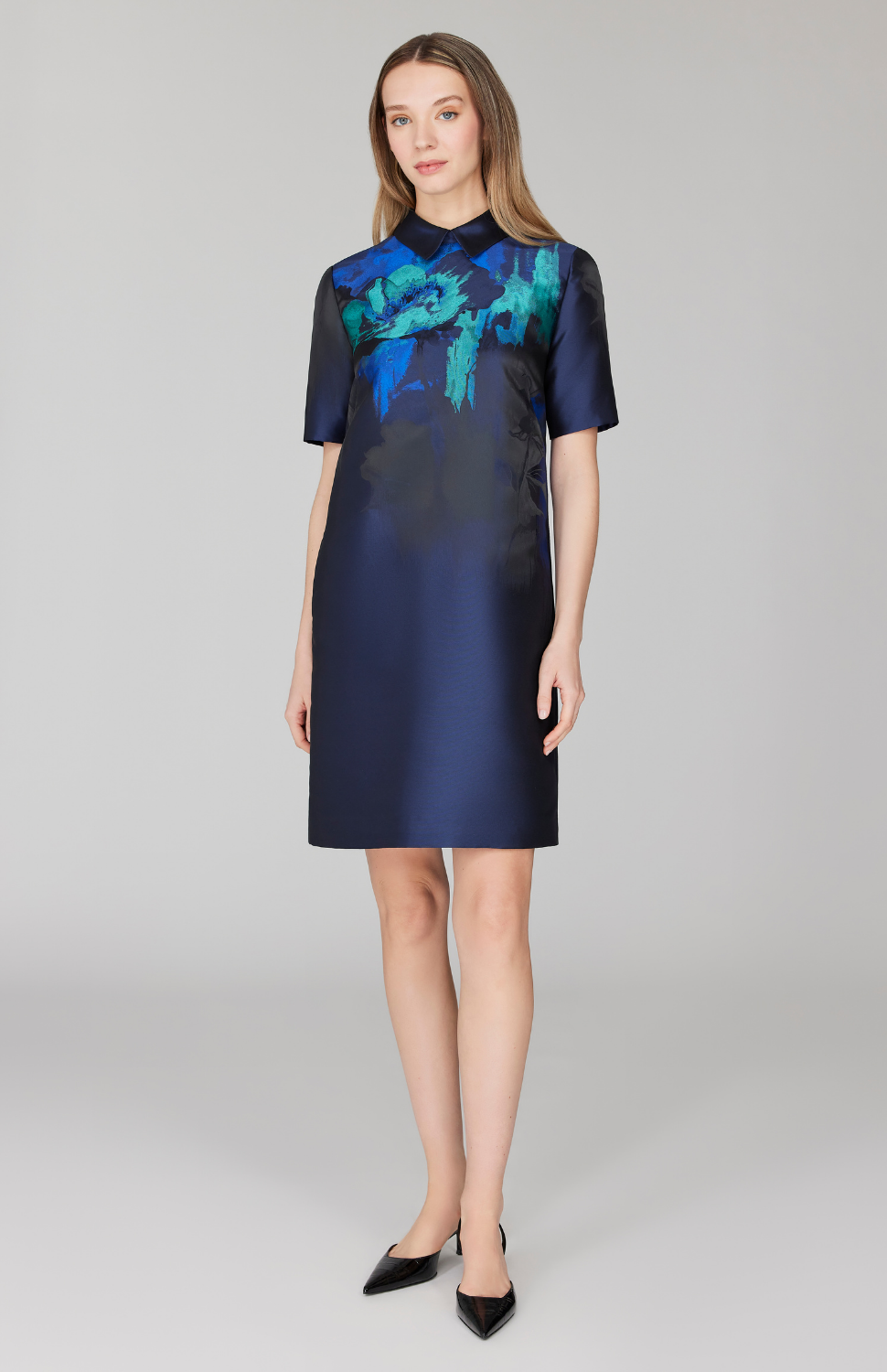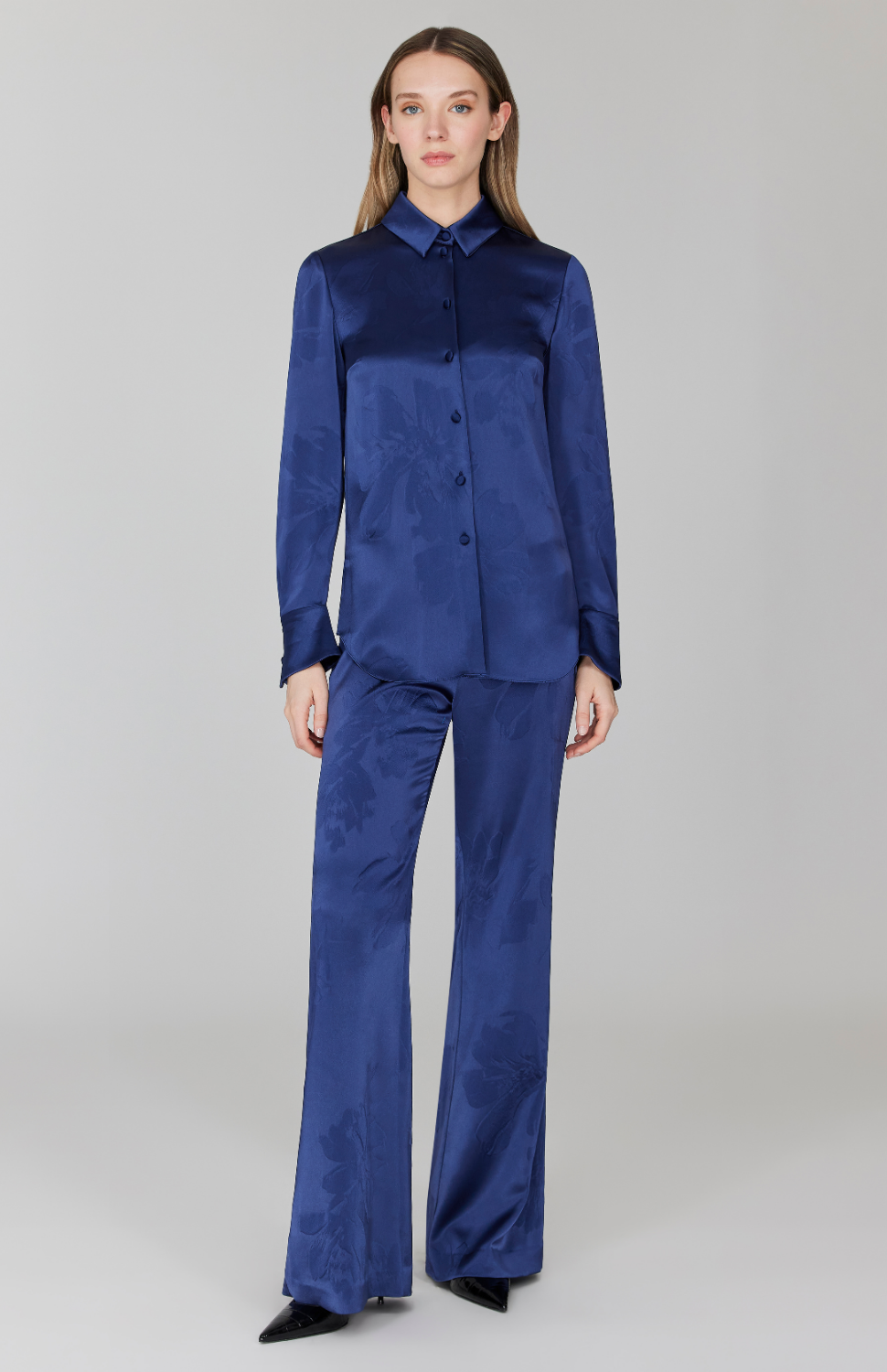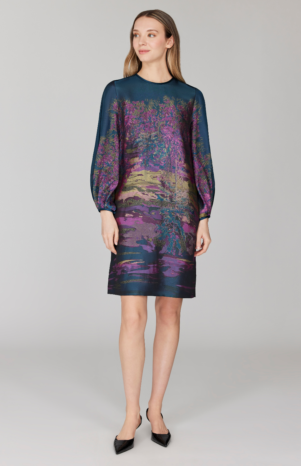 Each season's collection builds around a treasured fabric developed from Mi Jong's favorite paintings, proprietary novelty fabrics, luxe silk satins, and substantial silk georgettes