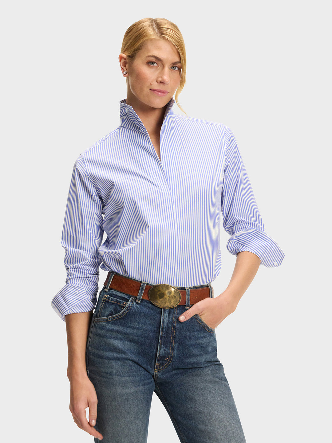 Meticulous tailoring and small production runs of seasonal, exclusive Italian fabrics make Sarah's shirts collectibles. The clean and elegant Signature style features a malleable collar to frame and flatter your face. The Weekend shirts have visible buttons and a more relaxed feel. The Western shirt channels your outdoor girl and the Cap Sleeve takes you away.