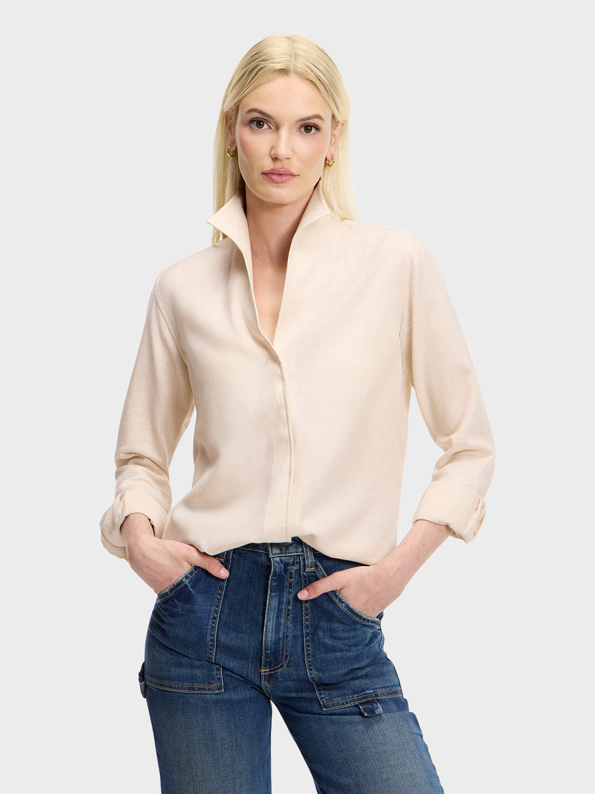 Our best-selling Signature Shirt in a cozy tan cotton and cashmere blend.