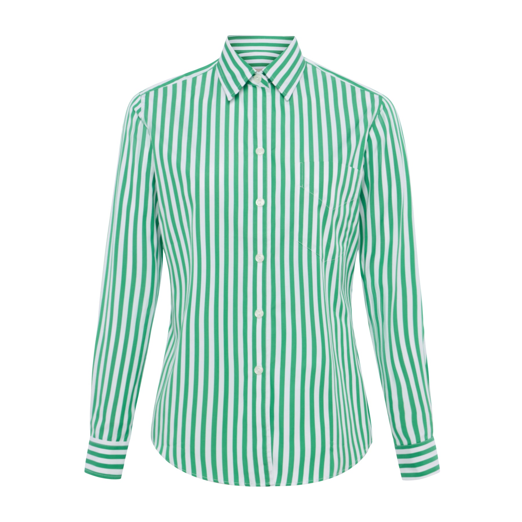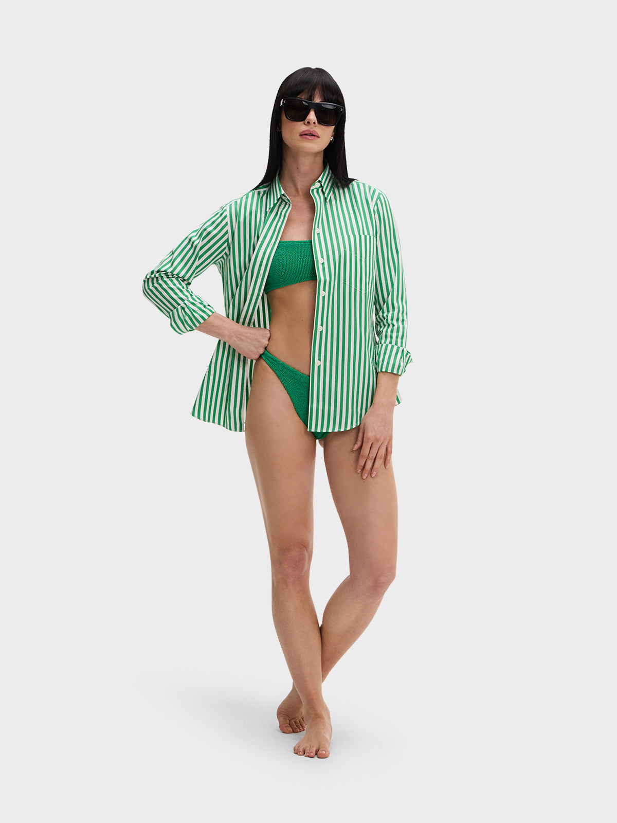 Our menswear-inspired Weekend shirt in a kelly green & white stripe cotton.