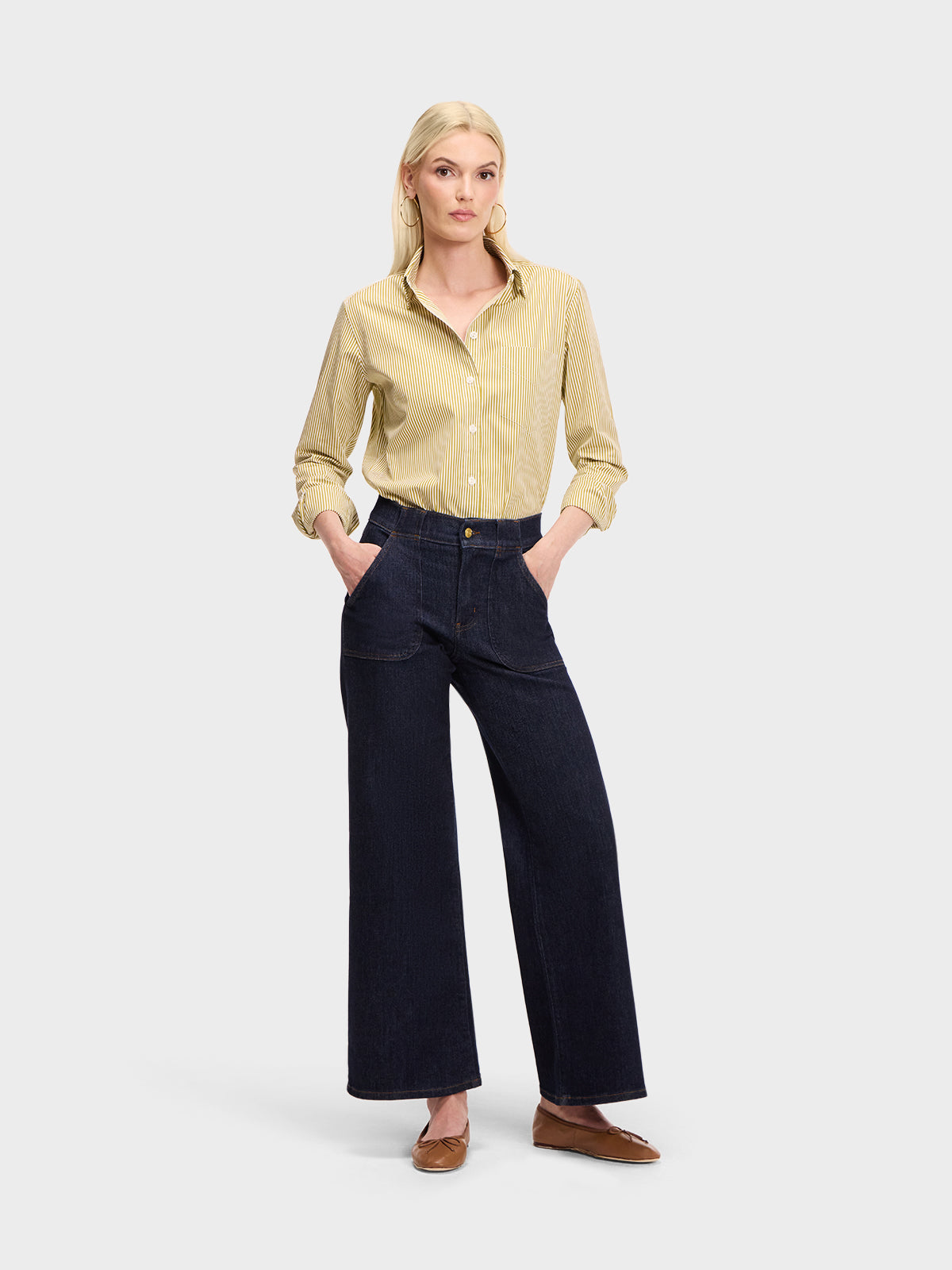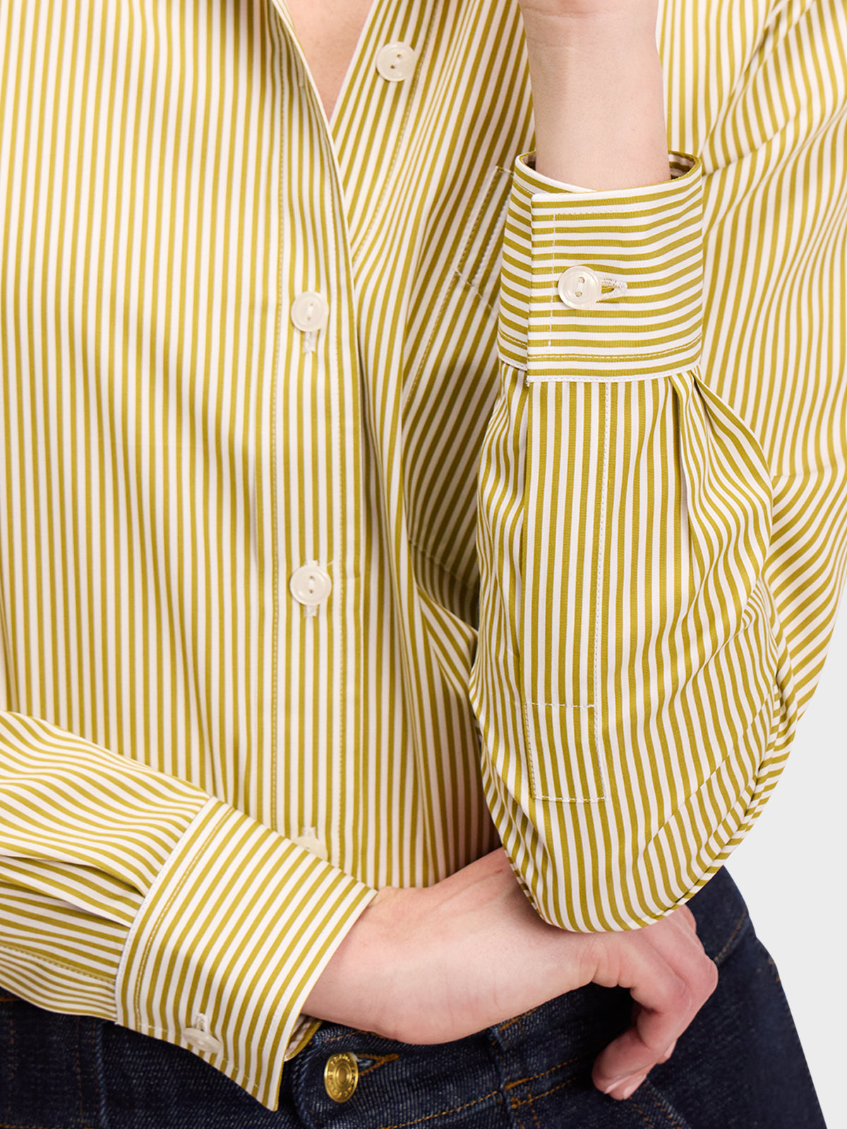 Our menswear inspired Weekend Shirt in a chartreuse and white stripe.