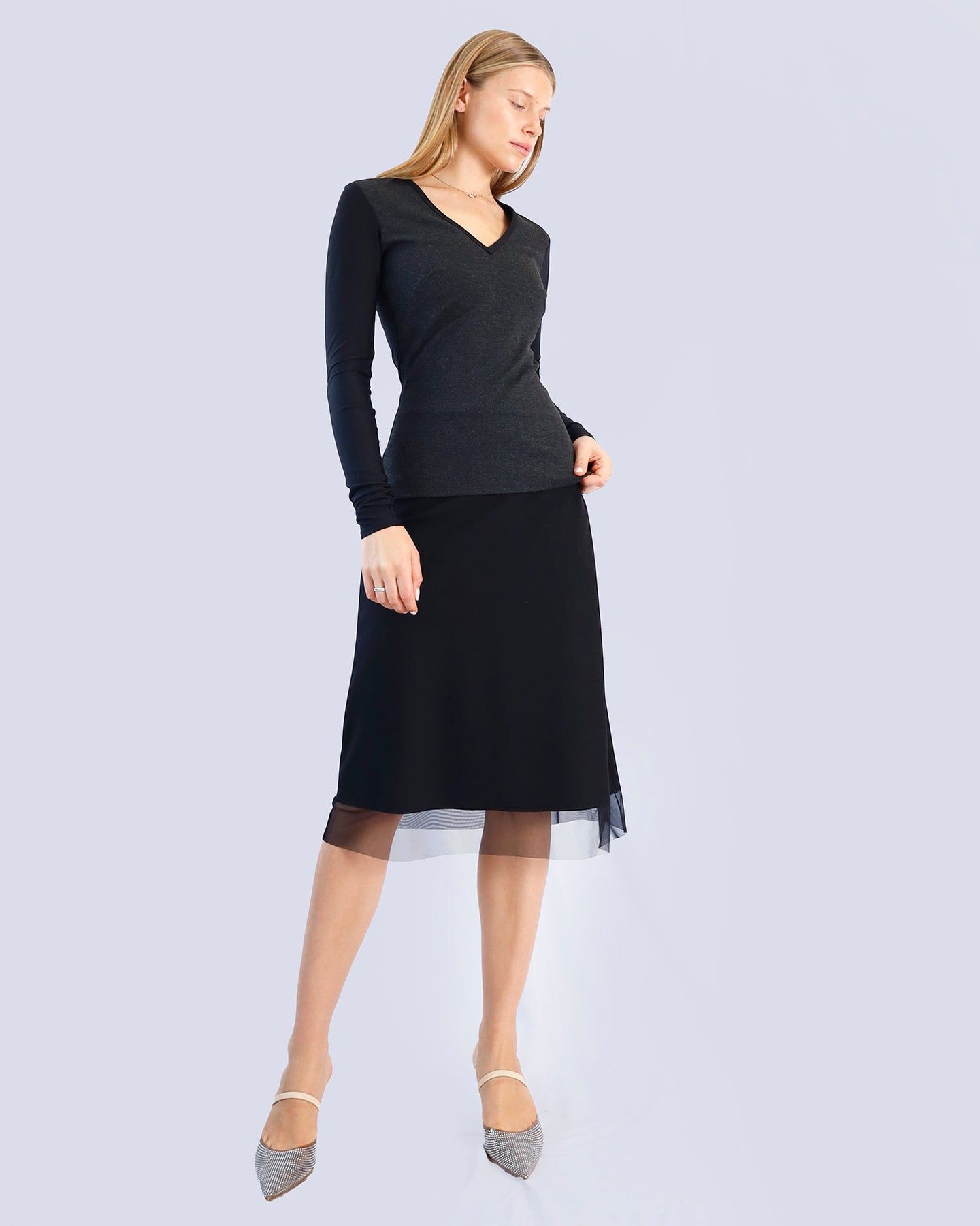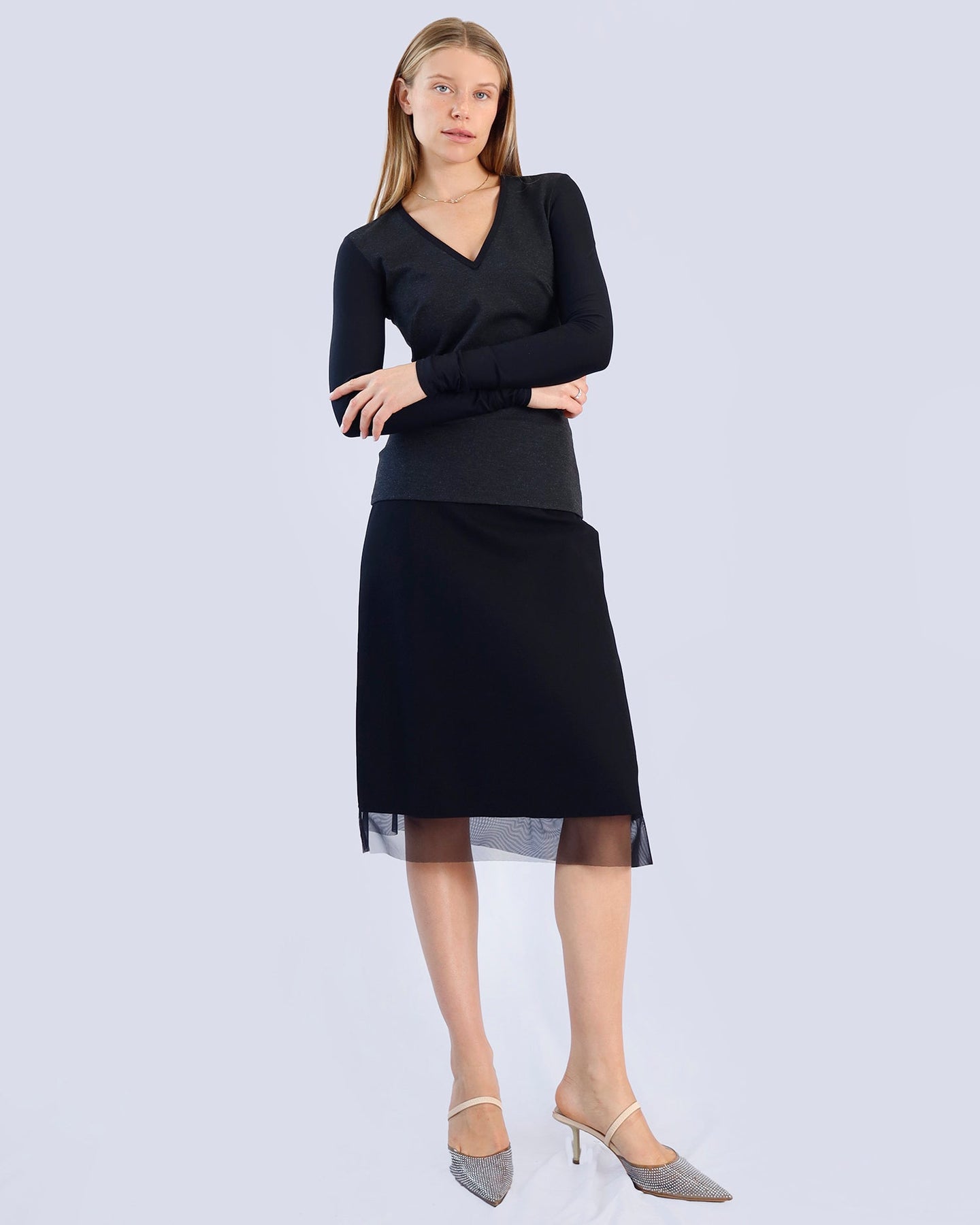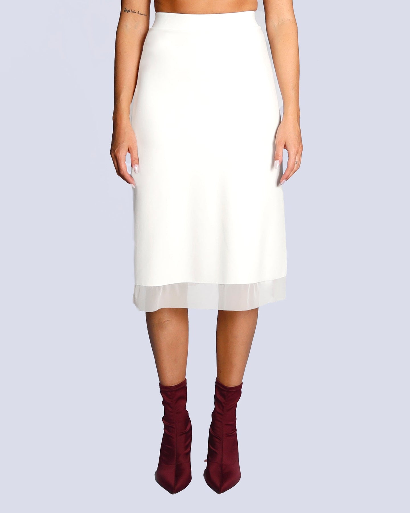 The ARCHY3 Skirt commands attention with its classic yet modern features. Expertly crafted from fine scuba fabric, this midi skirt will have you looking chic for any occasion. The perfect blend of comfort and style, you'll be wearing this timeless piece for years to come.