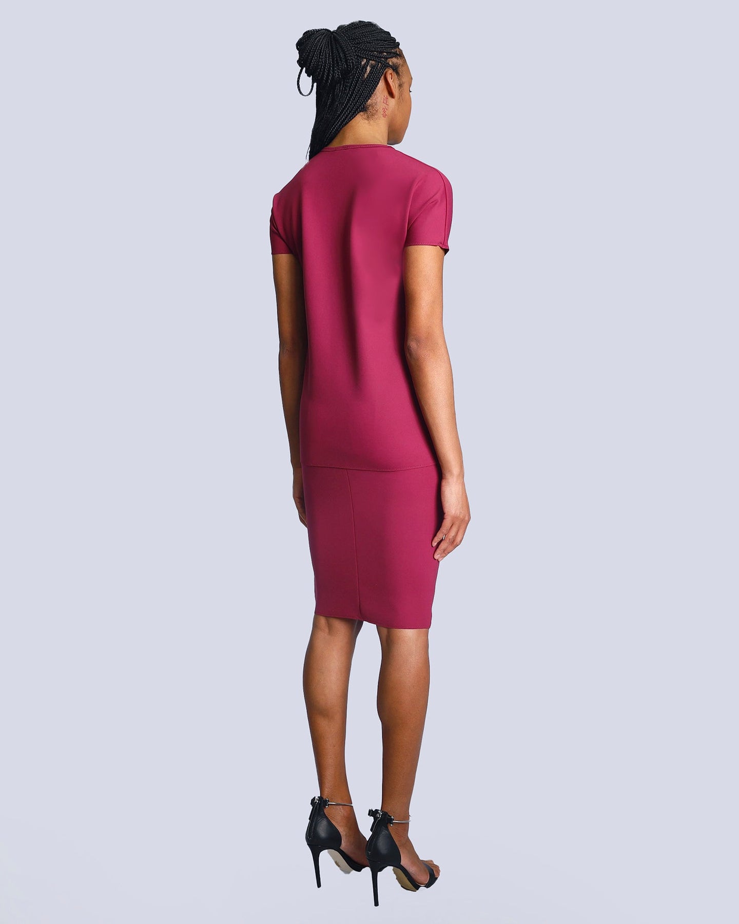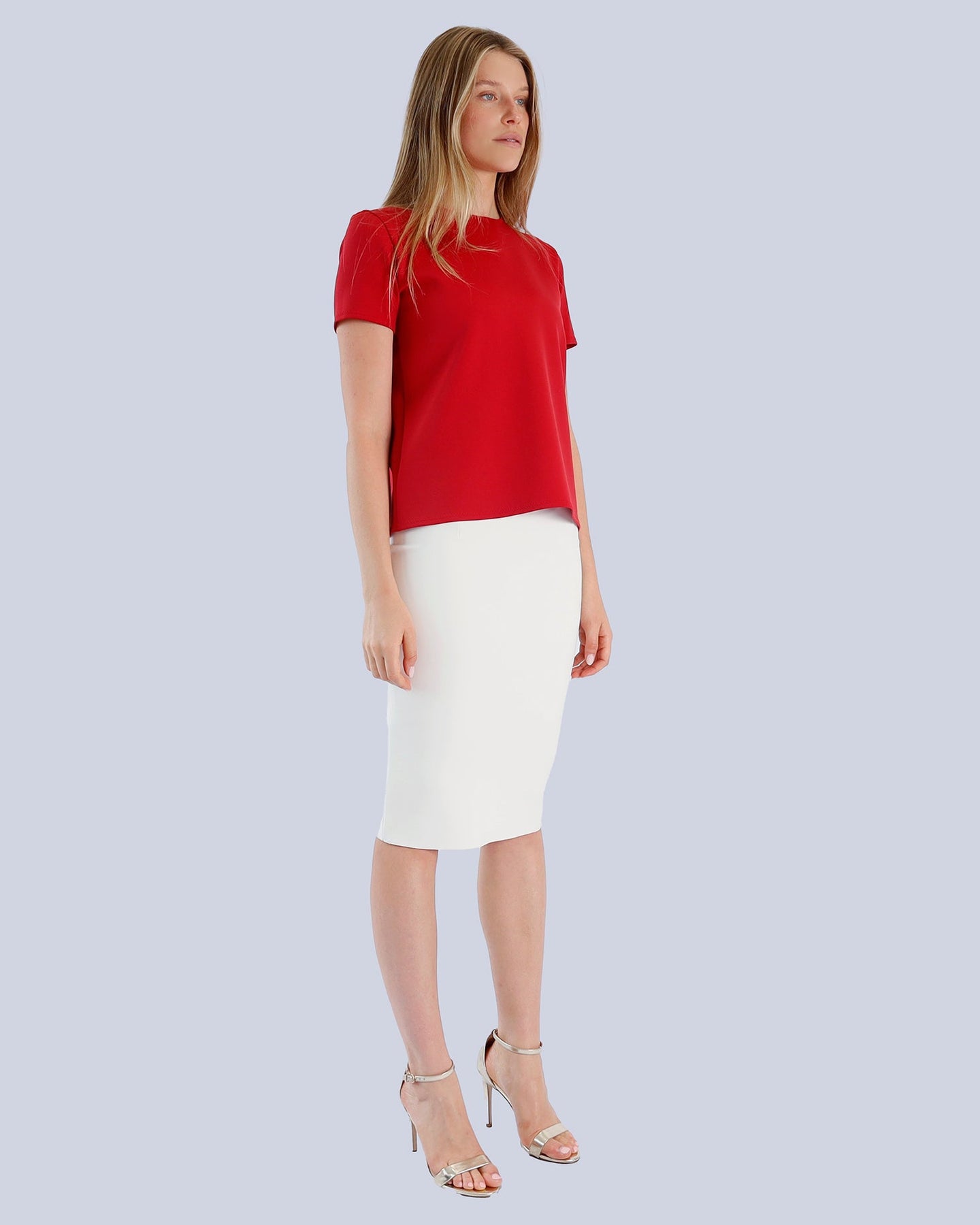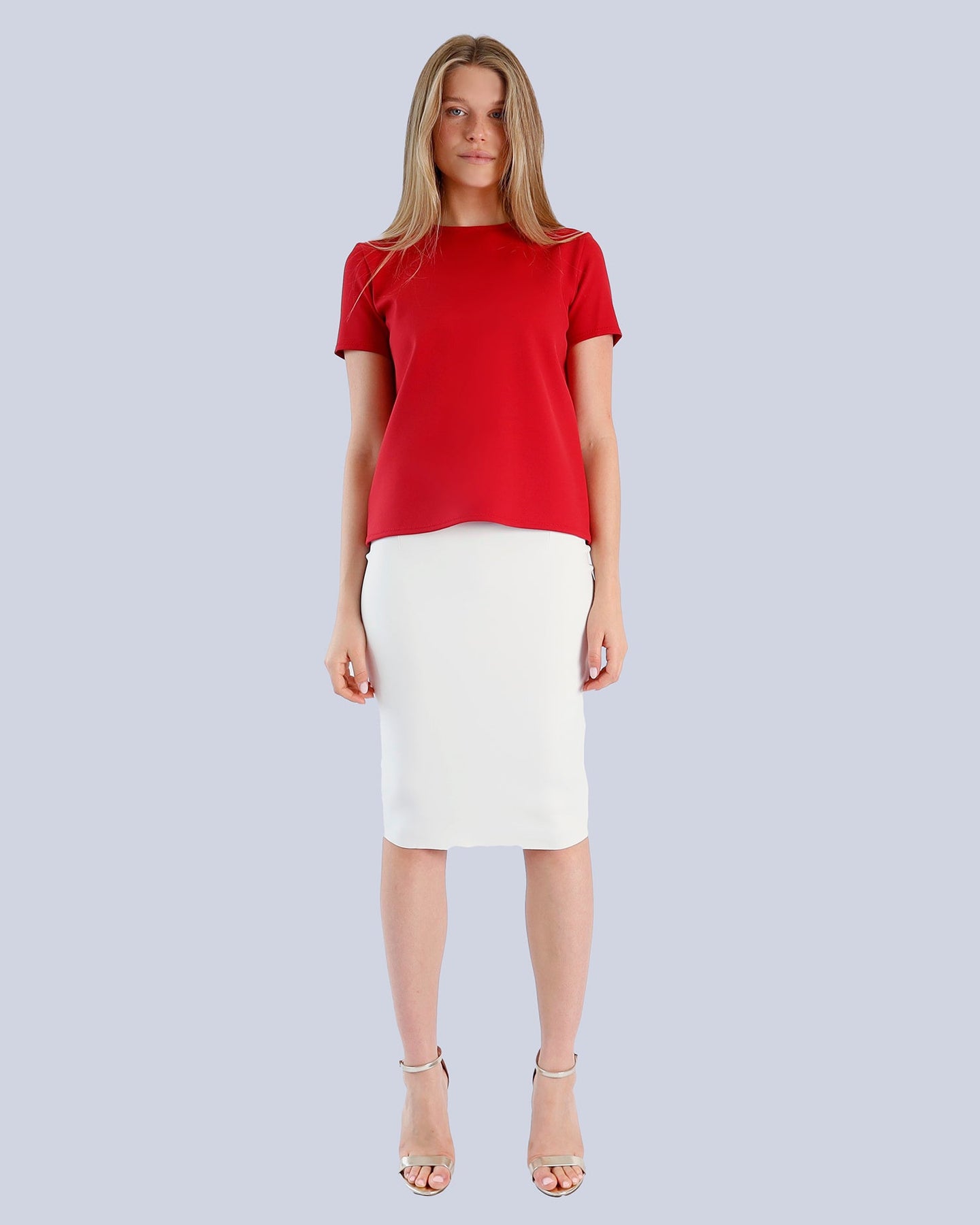 This BILGER skirt features a refined tapered silhouette crafted from fine scuba fabric, offering a sleek and structured look. Designed with an elasticated waistband for comfort, it sits elegantly above the waist and falls to knee length. Easy to slip on, this skirt combines sophistication with effortless wearability, perfect for polished, modern styling.