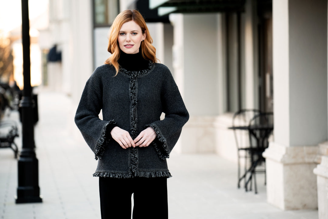 This fall, new knits mix with viscose stretch and can be worn head to toe. Supple modal blends feature sporty cable detailing, and a new cashmere blend offers weightless warmth and a welcome touch of hardiness On trend with gutsy wide leg pants, fringe details, and textural interest, Biana offers chic looks for every mood and occasion.