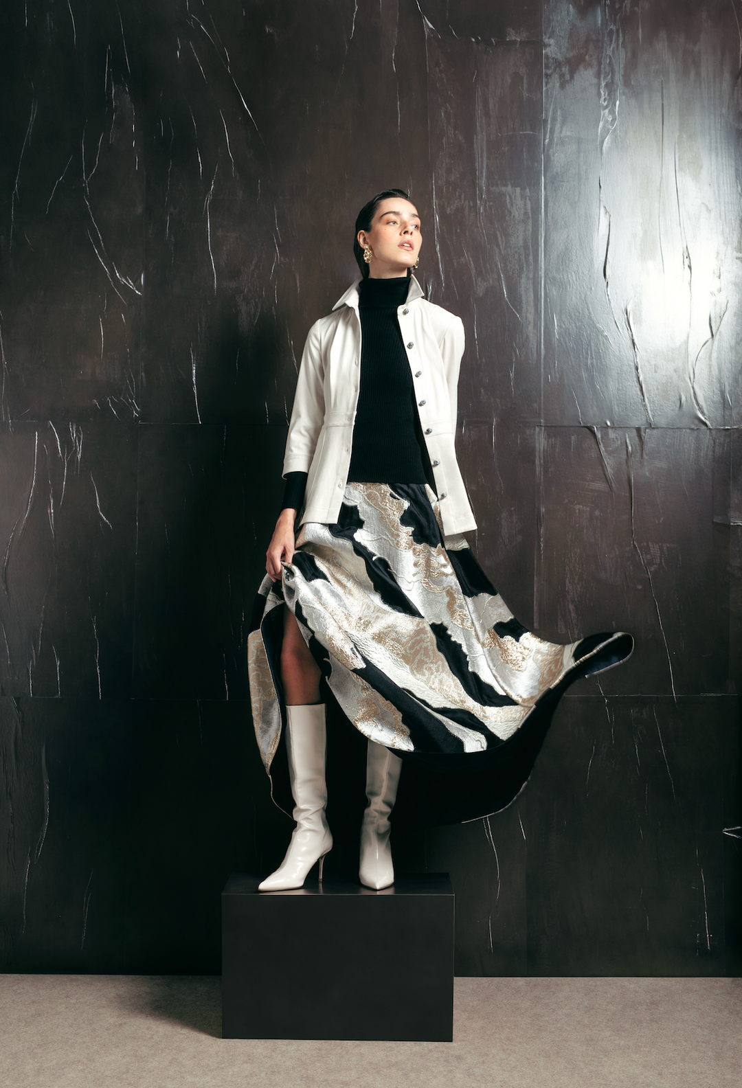 Hilton Hollis’s Fall 25 Collection, In Motion, explores fashion’s demand for movement in the present and movement into a reimagined vision of tomorrow. Stretch-infused fabrics and the careful shaping of pieces made from exquisite non-stretch fibers ensure comfort and ease in moving from one part of your day to the next. The fabric content and quality and the garment’s careful construction look to the future by creating lasting style, beauty, and utility with minimum waste.