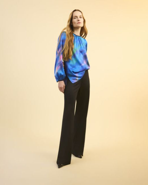 Designer Mi Jong Lee radiates vitality, and her joie de vivre and expertise infuse her clothing. This season’s “A Study in Blue” taps into an Asian cultural understanding of blue as the color that symbolizes spiritual connection with the divine power. From deep sea blue to vibrant Klein blue and soft celestial hues, blue offers serenity and hope.