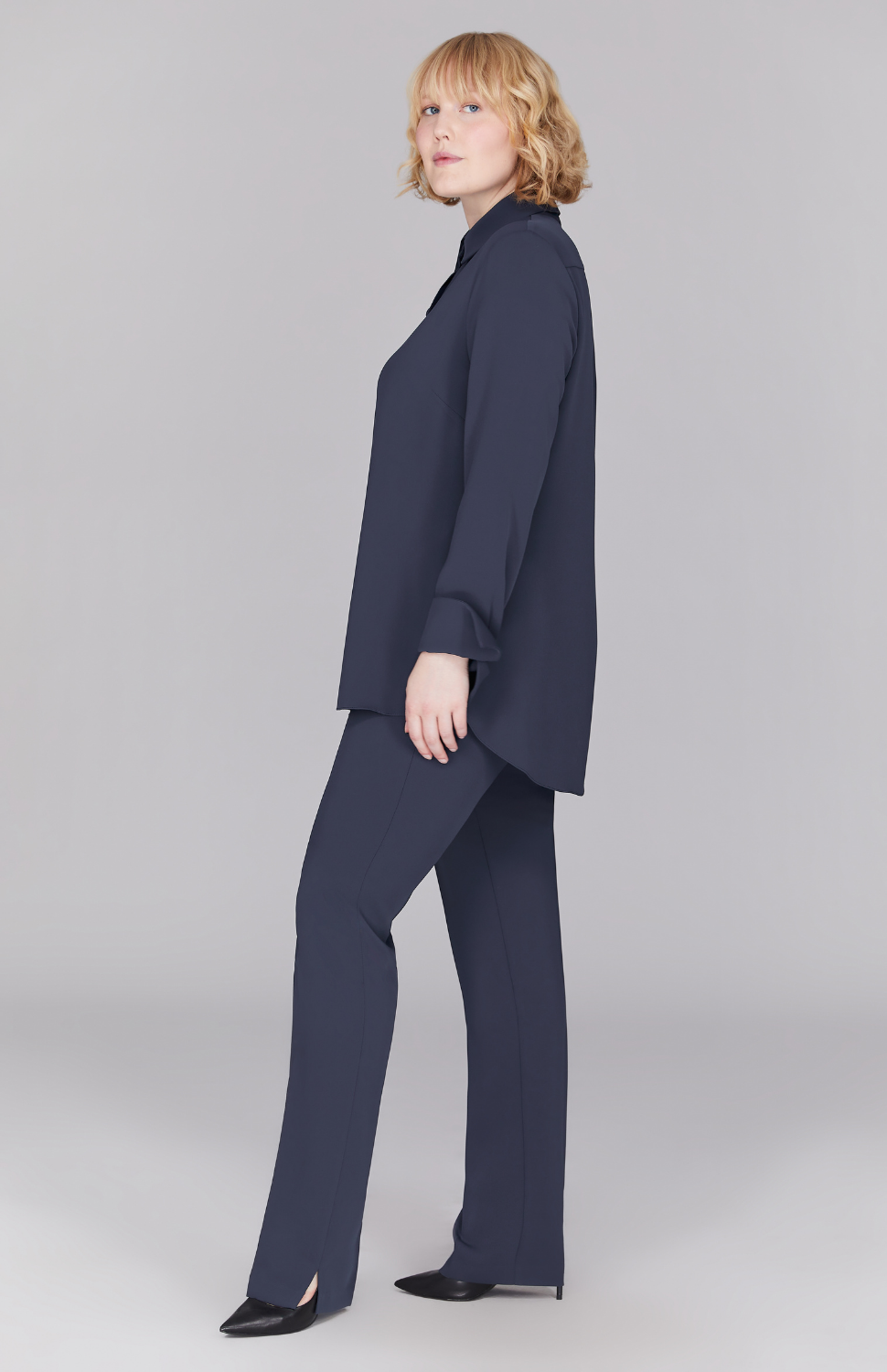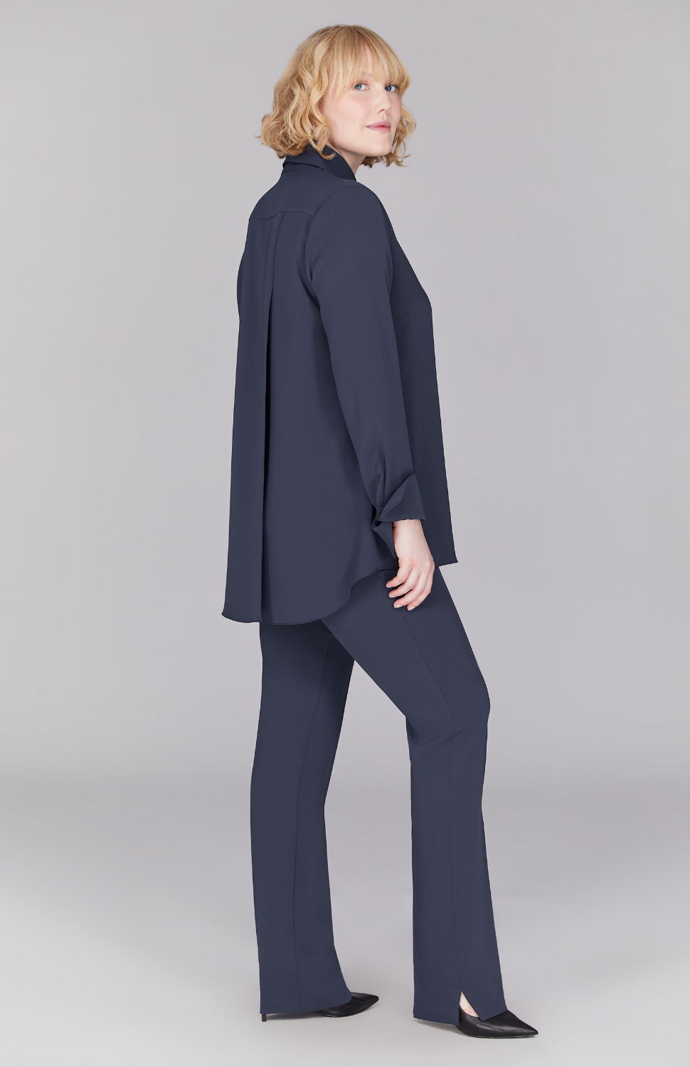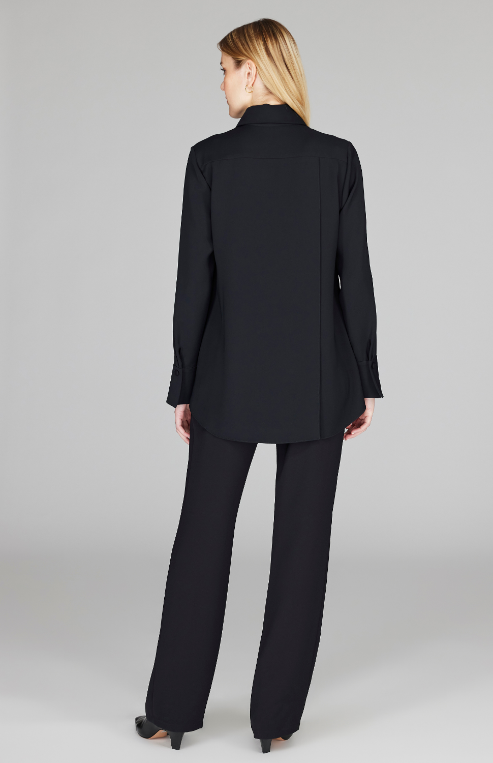 Our best-selling collared button down shirt, featuring a back overlap for beautiful movement and comfort. Try out a classic Pearl or Black or use this blouse to add a fun pop of color.