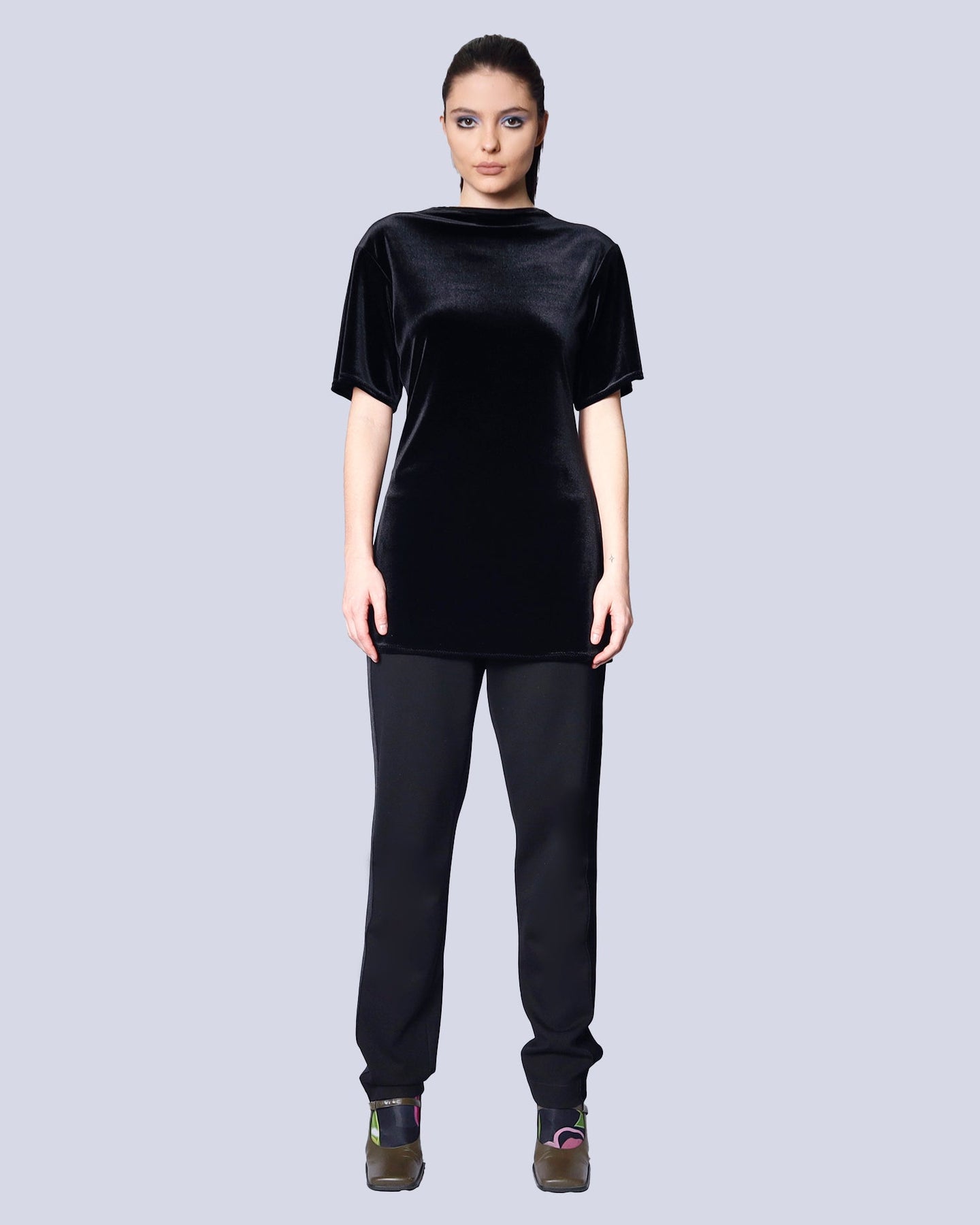 Indulge in the elegance of our MANUELA pants. Crafted from luxurious Double Jersey fabric, these straight-legged pants feature stunning lateral stripe embellishments in soft Velvet. The elastic waistband offers a comfortable fit, making these pants perfect for any occasion. Elevate your wardrobe with these sophisticated and exclusive pants.