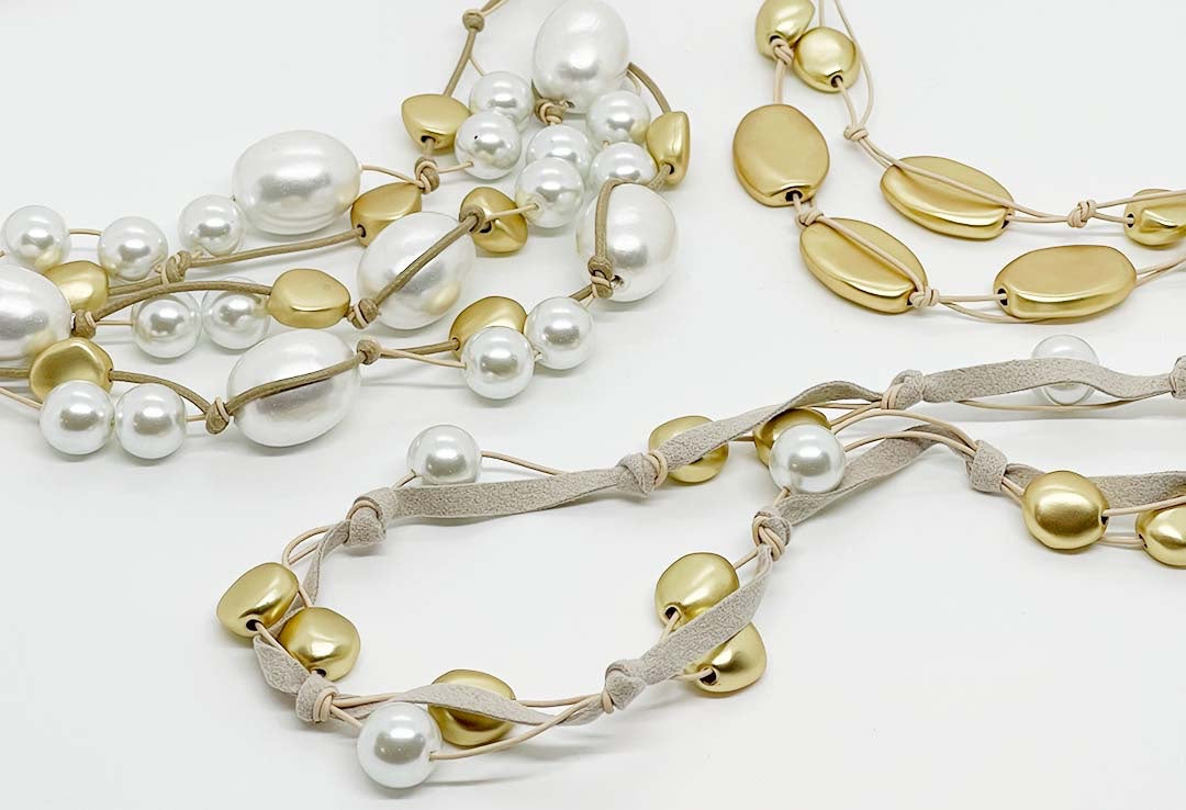 This season, Deborah’s jewelry highlights several themes: reinvented pearls, oversized round beads, the return of silver, and a contrasting tiny necklace collection perfect for Holiday giving. On-trend colors include cool blues and sophisticated neutrals; trending shapes include long pendant necklaces.