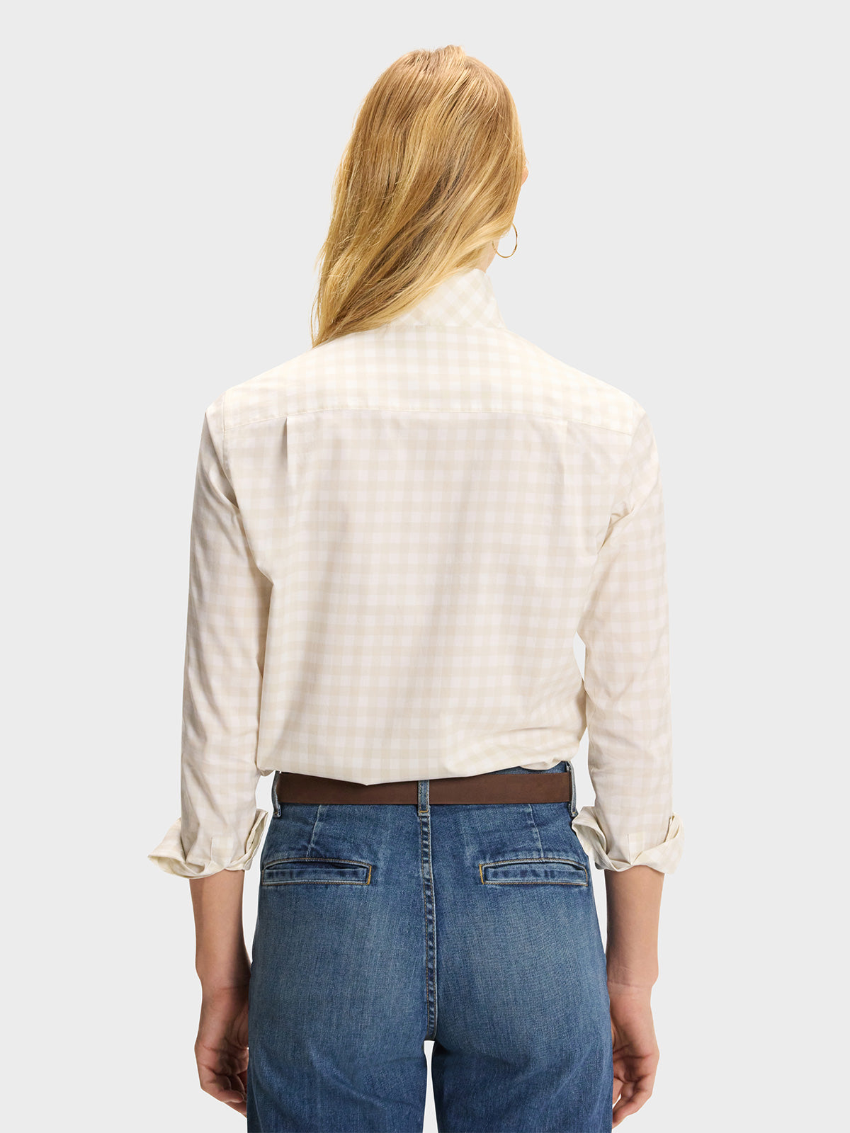 Our best-selling Signature Shirt in a sand and white gingham.